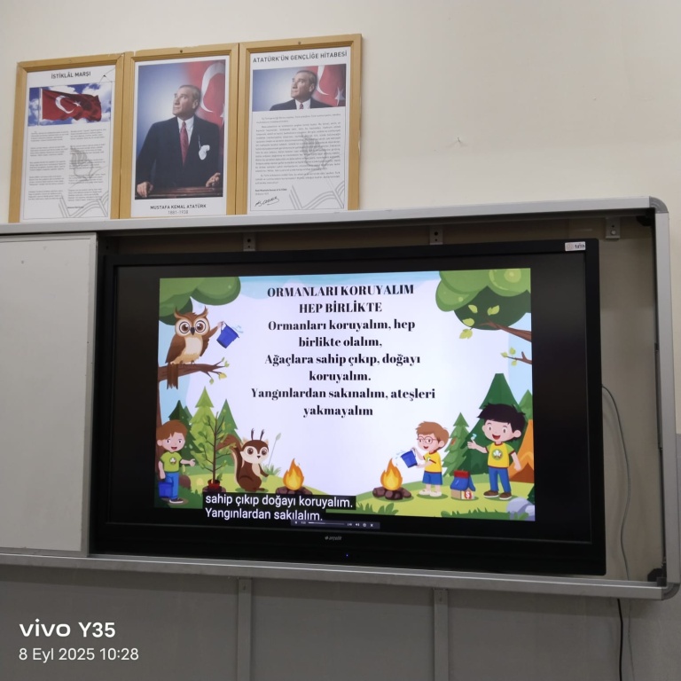 2025- 2026 eğitim öğretim yılının ilk haftasında öğrencilerimizin "Yeşil Vatan" kavramını tanımaları, doğa sevgisi ve çevreyi koruma bilincini pekiştirmeleri, ormanlar konusunda yapılan çalışmalara değer vermeleri ve sürdürülebilir bir yaşam için Yeşil Vatan'ın önemini fark etmeleri amacıyla farklı etkinlikler hazırlanarak uygulamaya sunulmuştur.