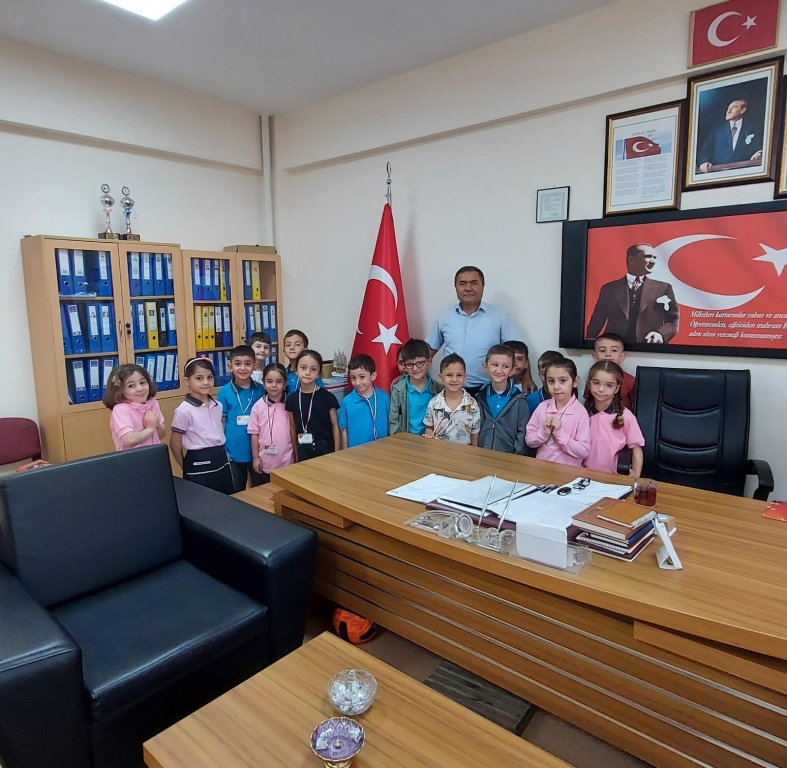 Birinci Sınıf Öğrencilerimiz okula uyum haftası etkinlikleri kapsamında okul müdürümüz Aslan Dağ'ı makamında ziyaret ettiler.